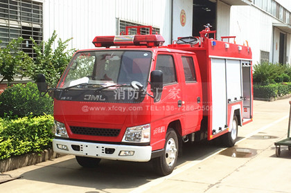 駕駛室頂部前端為長排警燈,車身后配有24V/60W火場照明燈一只,車輛兩側上方各配有紅藍相配的爆閃燈,下方安裝安全標志燈,乘員室、器材箱、 泵房內均裝有照明燈,加裝有100W警報器,回轉警燈開關、通訊設備預備接口。